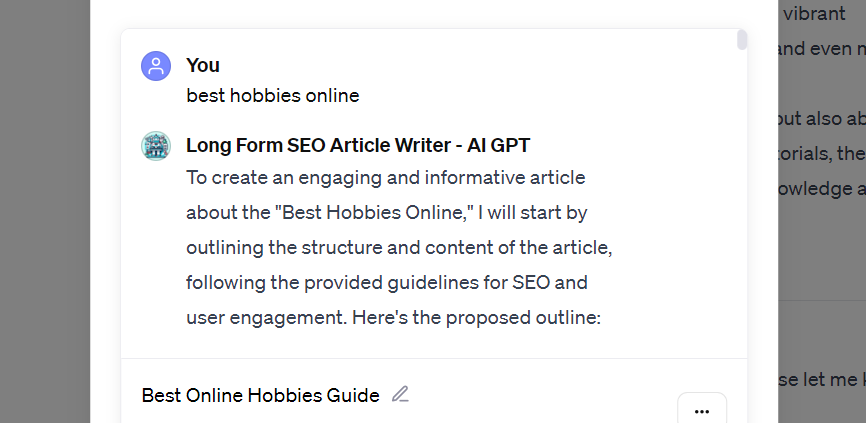 We're excited to introduce you to our new Custom GPT: "Long Form SEO Article Writer GPT"